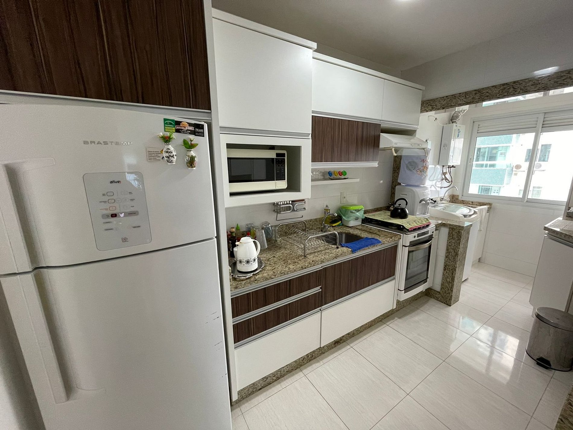* Cozinha totalmente equipada, incluindo geladeira duplex, micro-ondas;