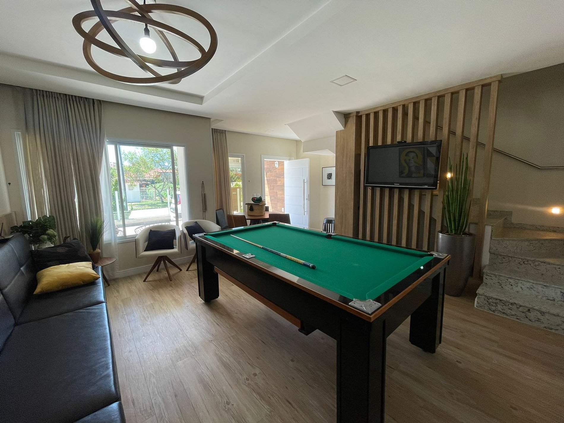 Desfrute de um excelente espaço para sua família e amigos nesta casa ampla e bem equipada, a apenas 280 metros do mar. Com 4 dormitórios (1 suíte) e capacidade para até 16 pessoas, todos climatizados, oferece ambientes arejados e aconchegantes, com sala de estar com mesa de sinuca e Smart TV, cozinha equipada, churrasqueira a carvão, cervejeira, 4 banheiros e pátio com estacionamento para até 5 carros. Acomodações completas com roupas de cama e cadeiras de praia.