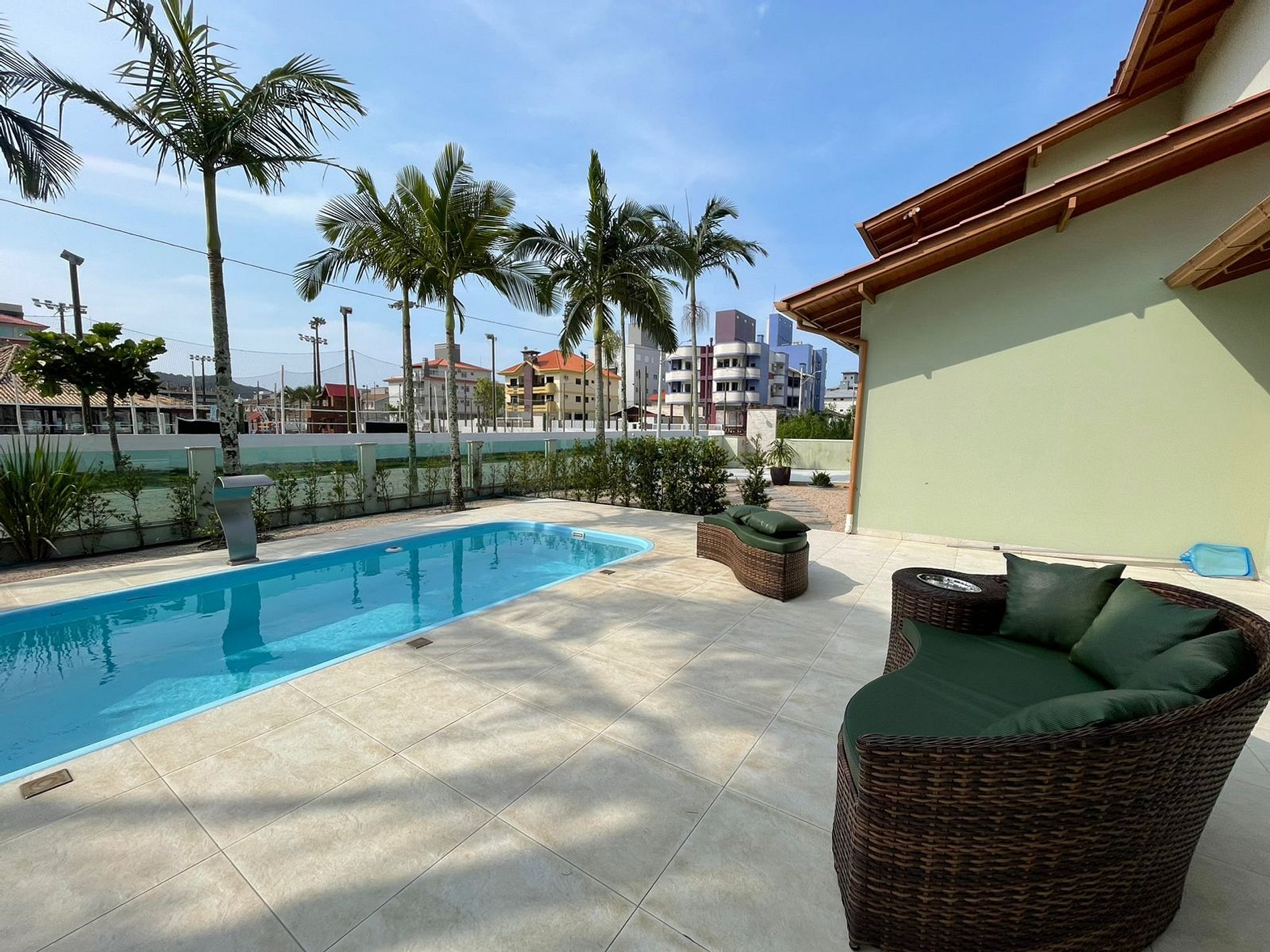 Ampla casa na Praia de Palmas, a apenas 150m do mar, em frente à associação Amo Palmas e próxima a mercado, na tranquila zona sul. São 4 dormitórios (todos com cama de casal e solteiro), ar-condicionado, 3 banheiros, sala com smart TV, Wi-Fi, piscina e área gourmet completa com forno/fogão a lenha, churrasqueira e mesa de sinuca. Acomoda até 12 pessoas. Conta ainda com 2 vagas cobertas e 1 descoberta.