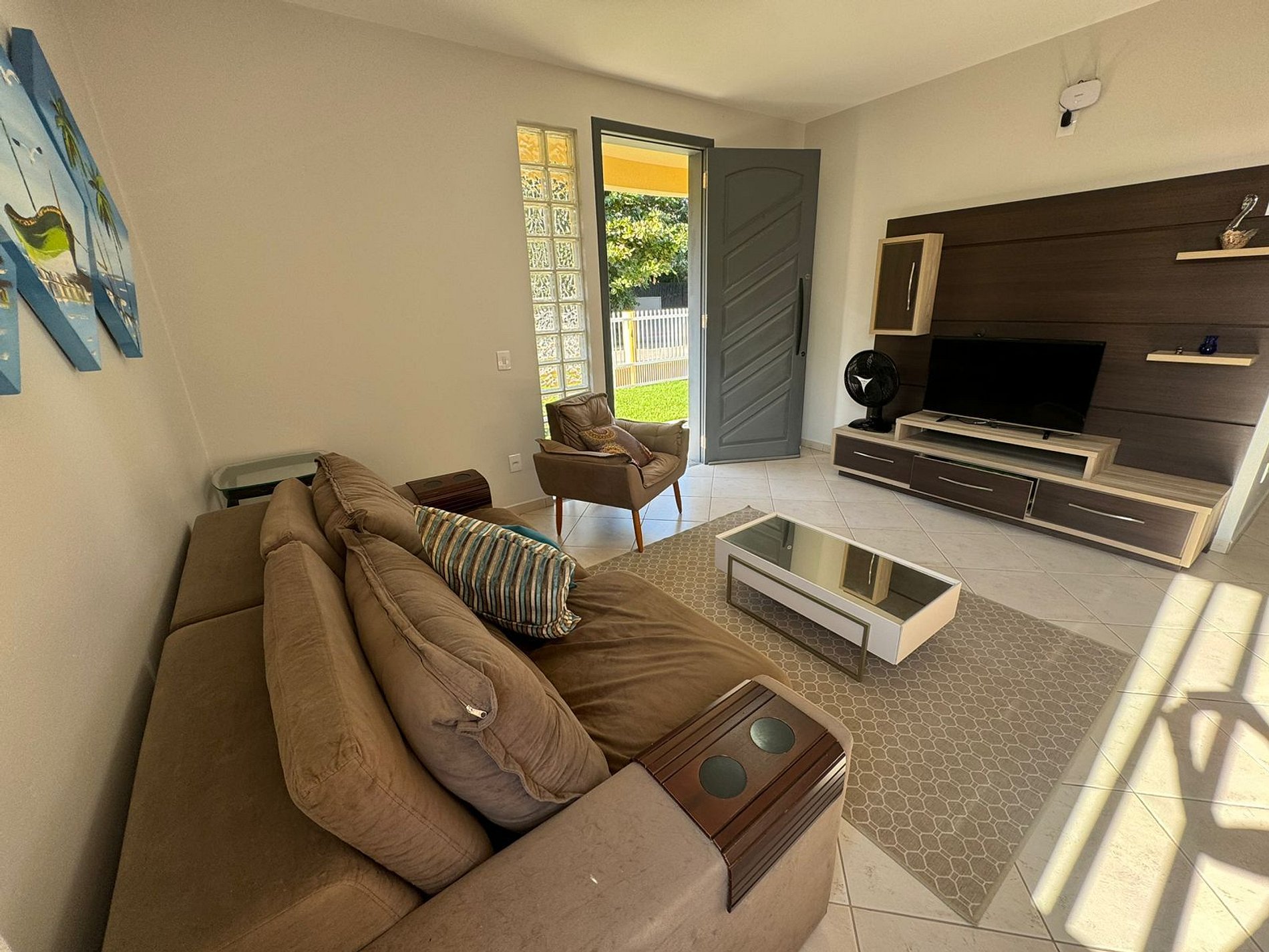 Área de estar com sofá/cadeira