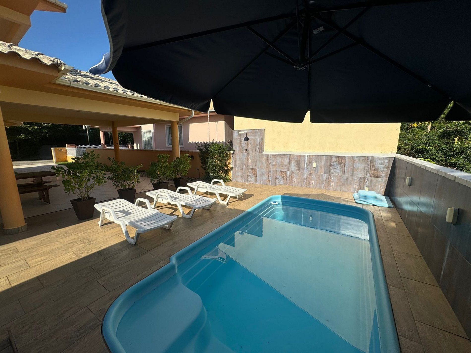 Excelente casa a 180 m do mar, na zona sul, ideal para famílias e grupos. Com 5 dormitórios (1 suíte), 2 banheiros sociais e ar-condicionado em todos os quartos, acomoda até 12 pessoas com conforto. Possui piscina, ampla área externa com churrasqueira, cozinha equipada, Wi-Fi, máquina de lavar, 6 cadeiras de praia e 2 guarda-sóis. Local tranquilo e bem localizado, perfeito para aproveitar dias de descanso perto da praia.
