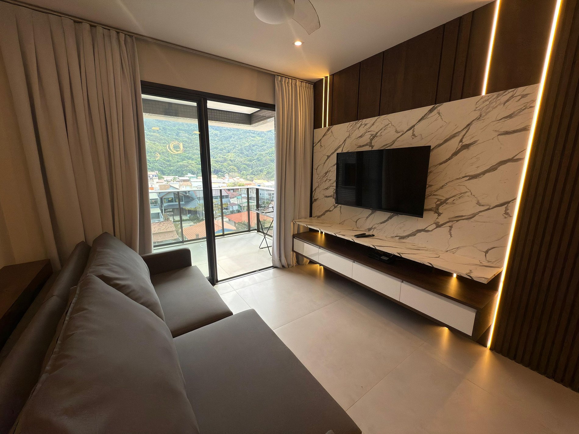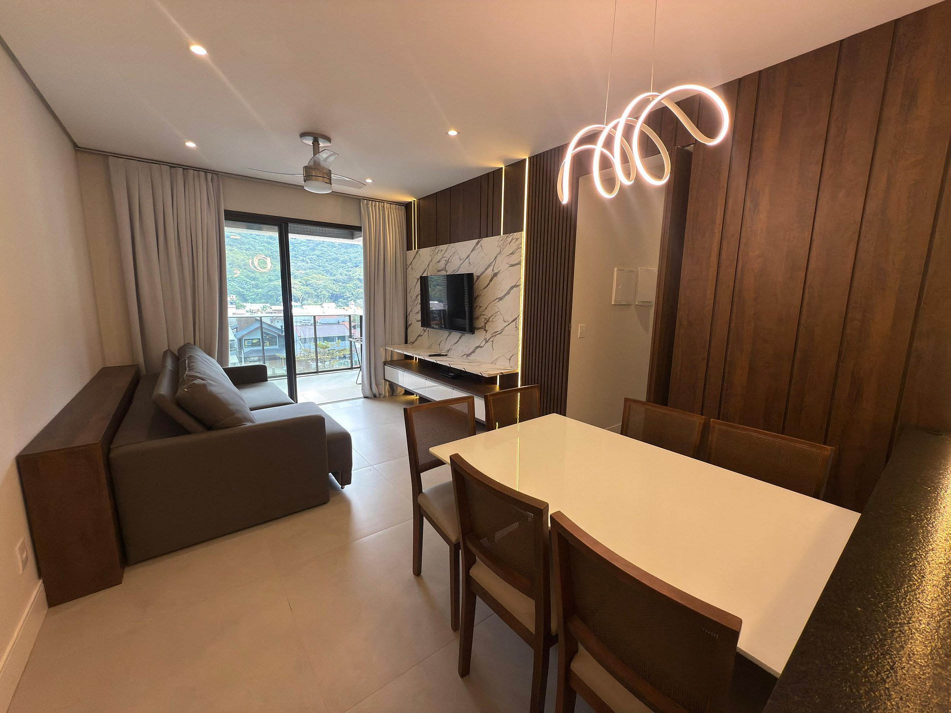 Aproveite sua estadia neste amplo e bem decorado apartamento no Residencial Duetto Home, a apenas 180 metros do mar. Com 3 dormitórios (1 suíte com cama king, 1 com cama de casal e 1 com duas de solteiro), oferece sala aconchegante com Smart TV 50”, cozinha equipada com cervejeira, área de serviço, sacada com churrasqueira e vista para o verde. Conta ainda com ar-condicionado em dois quartos, vaga coberta, piscina e elevador para seu conforto.
