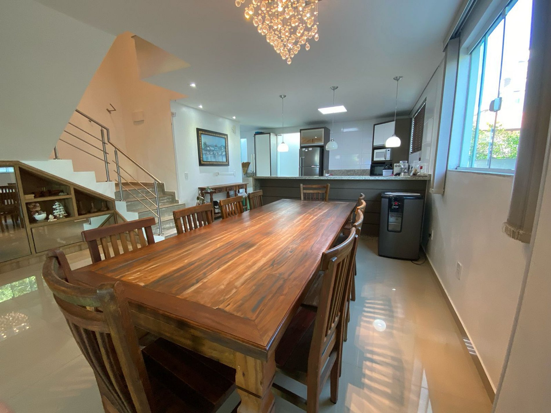 Casa na principal avenida da Praia de Palmas, a 300m do mar. Ampla e aconchegante, acomoda famílias em 3 dormitórios climatizados, sendo 1 suíte, todos com cama de casal. Possui sala com sofá e TV, mesa de jantar para 10 pessoas, cozinha equipada com geladeira, forno, micro-ondas e chaleira elétrica, além de máquina de lavar. Conta ainda com churrasqueira na entrada, cervejeira, janelas com persiana e garagem para até 3 carros, ideal para suas férias.
